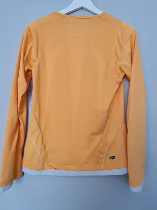 Maglia sportiva a maniche lunghe Adidas da donna, di colore arancione e grigio - Dettagli riflettenti. - Tessuto tecnico. - taglia M (46)