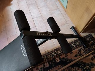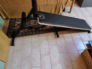 Panca per esercizi addominali e addestramento. - Struttura in metallo nero. - Seduta imbottita. - Supporti per gambe imbottiti.