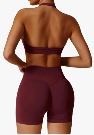 Set da palestra senza cuciture per donna, composto da top e pantaloncini. - Tessuto morbido e confortevole. - Design senza cuciture per una maggiore libertà di movimento. - Colore bordeaux intenso. Vendo per taglia errata mai indossato Ho messo queste foto così si capisce com'è quando indossato