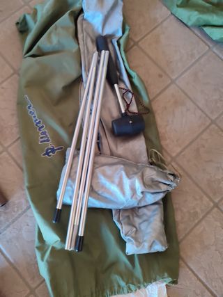 Tenda da campeggio Ferrino di colore verde. - Materiale in nylon. - Design a cupola. - Chiusura a zip.