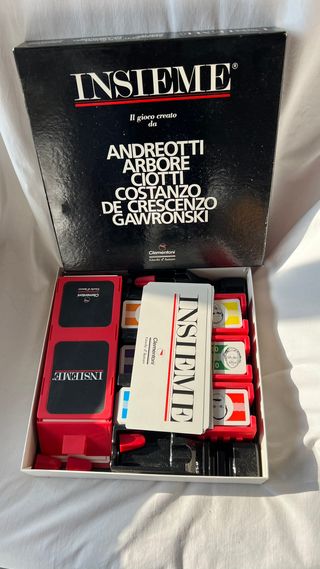 Gioco da tavolo Insieme creato da autori famosi. - Titolo: Insieme - Autori: Andreotti, Arbore, Ciotti, Costanzo, De Crescenzo, Gawronski - Editore: Clementoni - Linea: Giochi d'Autore