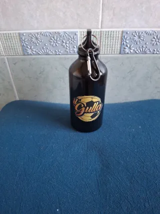 Borraccia nera con stampa il Gulla e pallone da calcio. Ideale come idea regalo. - Materiale: metallo - Chiusura a vite - Moschettone per aggancio a base o zaini