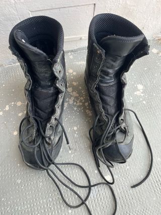 Anfibi militari molto usati ma con suola Vibram ancora in ottima condizione. Modello estivo adatto a guadi con occhielli per far uscire acqua. Vedi foto per segni usura