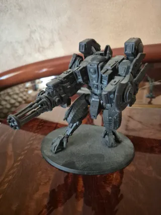 Modellino di un Riptide XV104 della fazione Tau per Warhammer 40,000. - Dettagli intricati tipici del design Tau. - Base rotonda inclusa.