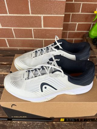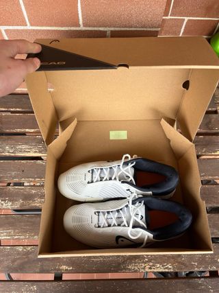 Scarpe da padel HEAD bianche, modello Arturo Coello. Numero 46, usate poche volte, comode e come nuove, veste anche un piede leggermente più piccolo. - Tomaia bianca con dettagli neri. - Logo HEAD sul lato. - Suola bianca. - Lacci bianchi.