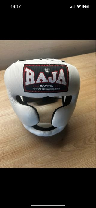 Casco da boxe Raja, in ottime condizioni, quasi nuovo. - Colore bianco. - Logo Raja Boxing sul davanti. - Design protettivo per la testa.