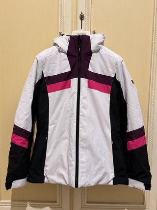 Giacca da sci da donna con un design colorato e moderno. - Colori: bianco, nero, fucsia e bordeaux. - Cappuccio. - Zip centrale. - Impermeabilità: 5000 - Traspirabilità: 5000 - Misure disponibili nell’ultima foto. - Indossata solo una volta e lavata in lavanderia. - Vendo per inutilizzo.