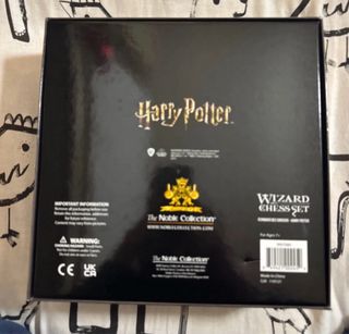 Set di scacchi a tema Harry Potter della The Noble Collection. - Scatola con logo Harry Potter e The Noble Collection. - Include informazioni importanti e avvertenze. - Marchi CE e UK CA presenti.