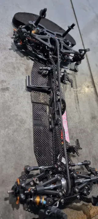Per cambio categoria vendo Telaio da competizione Serpent 1/10 X20 24. Con qualche ricambio differenziale di ricambio completo carrozzeria 2 treni di gomme usate - Telaio in carbonio. - Trasmissione a cinghia. - Ammortizzatori. - Sospensioni. - Cerchi. - Gomme. - Carrozzeria.