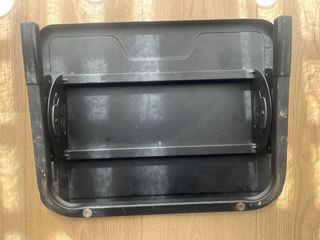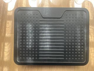 Pedana poggiapiedi in plastica nera, ideale per migliorare la postura. - Superficie superiore con rilievi circolari. - Superficie inferiore con scanalature orizzontali. - Design ergonomico.