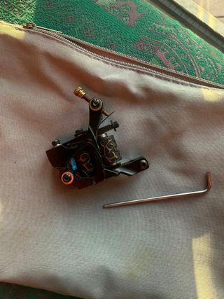 Macchinetta per disegni su pelle di colore nero con dettagli dorati e una brugola inclusa. - Macchinetta per disegni - Brugola.