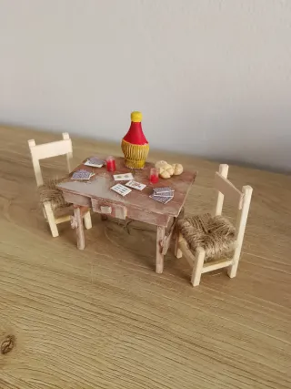 Set di tavolo e sedie in miniatura, perfetti per arricchire il tuo presepe.