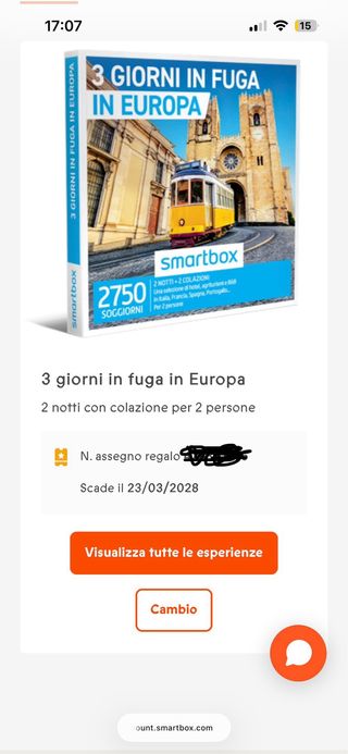 Smartbox 3 Giorni in Fuga in Europa per 2 persone. Con pellicola sigillata - Include 2 notti e 2 colazioni. - Valido per soggiorni in Europa. - Oltre 1500 soggiorni disponibili.