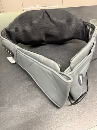 Massaggiatore per collo, schiena e cervicale, ideale per alleviare tensioni. - Rivestimento in ecopelle nera e grigia. - Include adattatore per auto e alimentatore. - Cavo di alimentazione lungo.