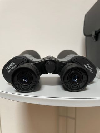 Binocolo Alpex con custodia nera e tracolla. Modello: 30x60 mm Colore: nero e grigio Campo visivo 35/1000 mt Regolazione diottrica e messa a fuoco centrale Ottime condizioni Lunghezza 23 cm