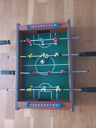 Biliardino da tavolo per partite di calcio. - Include 2 palline. - 2 squadre da 6 giocatori ciascuna. - Dimensioni del prodotto: 50,5 x 31,5 x 9,5 cm. - Adatto dai 3 anni in su.