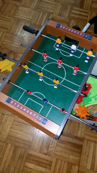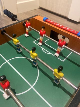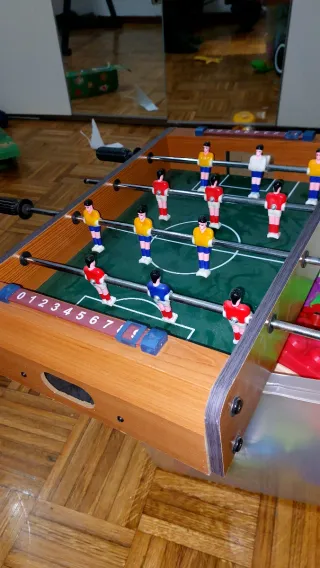 Biliardino da tavolo in legno, perfetto per il divertimento in casa. - Struttura in legno resistente. - Giocatori colorati per due squadre. - Barre scorrevoli per il controllo dei giocatori. - 2 palline incluse. - Segnapunti scorrevole su entrambi i lati. - Lunghezza 50 cm - L'unico difetto è la mancanza dell'impugnatura in gomma su una della manopole #biliardino #giochi #gioco #giocodatavolo #bambini #calcio