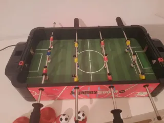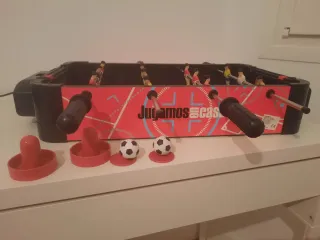 Mini calcio balilla per giochi divertenti. - Campo da gioco verde con giocatori. - Barre per muovere i giocatori. - Palline incluse. Non è stato rilasciato perché ne hanno dati due uguali