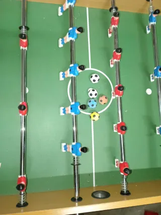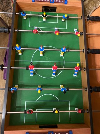 Biliardino in buone condizioni, perfetto per il divertimento dei ragazzi. - Struttura in legno. - Giocatori rossi e blu. - Barre scorrevoli.