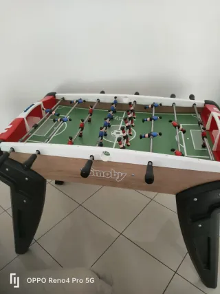 Biliardino da calcio per il divertimento di grandi e piccini. - Struttura in legno. - Campo da gioco verde. - Giocatori rossi e blu. - Barre metalliche. Nuovo usato pochissimo in perfetto stato vendo per trasloco