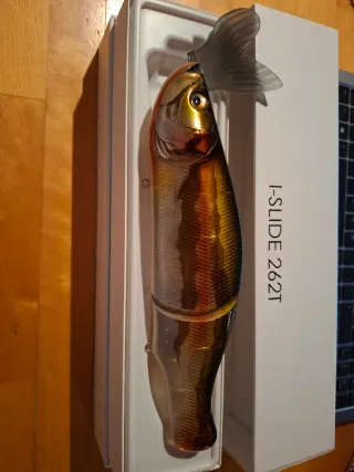 Swimbait Megabass I-SLIDE 262T. - Colore oro e bronzo. - Design realistico a forma di pesce. - Coda flessibile.