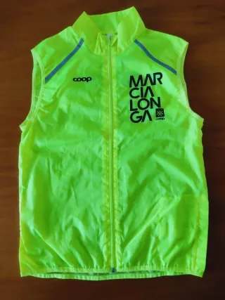 Giacca a vento trasparente ad alta visibilità. - Taglia S. - Logo coop sul petto. - Scritta MARCIALONGA coop sul lato destro. - Inserti blu sulle spalle. - Running / Ciclismo / Triathlon / Pattinaggio