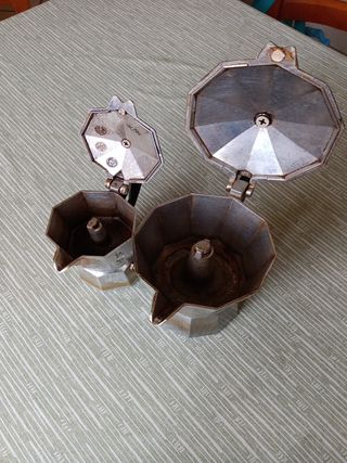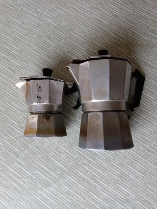 caffettiere non funzionanti ( la piccola fischia, la grande non esce bene il caffè) che possono servire da vaso o altre creazioni artistiche. le misure sotto sono di quella grande