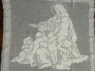 Vendo Quadro/Centrino Uncinetto Gesù, quadro/centrino lavorato a uncinetto con tecnica filet, rappresentante Gesù con dei bambini, misure 74x76 Nuovo