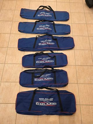 Foderi da pesca originali Colmic, come nuovi. 1 fodero per Rullo Bar Roller Competition 37 + 37 cm 1 fodero per poggiapunte Top Kit Rest Match a 12 posti senza battuta 1 fodero per poggiapunte Top Kit Rest Match a 12 posti con battuta 2 foderi per poggiapunte Top Kit Rest Competition a 15 posti senza battuta 1 fodero per poggiapunte Top Kit Rest Competition a 15 posti con battuta Prezzo € 12 per fodero, se presi tutti assieme €60 in totale Colmic Tubertini Maver Italica Preston Daiwa Shimano Kolpo Stonfo Caperlan Guru Hydra Veret matrix rive kkarp carson milo mitchell ignesti italcanna yamashita nash prologic Trabucco Garbolino