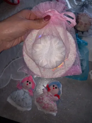 Deliziosi sacchetti contenenti gessetti profumati, realizzati a mano con cura. - Gessetti decorati con motivi floreali. - Sacchetti in organza con nastri colorati. - Ideali come bomboniere o piccoli pensieri.€ 1 ciascuno