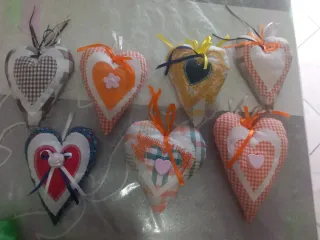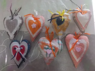 Deliziosi cuoricini decorativi realizzati a mano con stoffa. - Ogni cuoricino è unico e realizzato con cura. - Perfetti per decorare la casa o come bomboniera. - Diverse fantasie e colori disponibili.€ 1 ciascuno