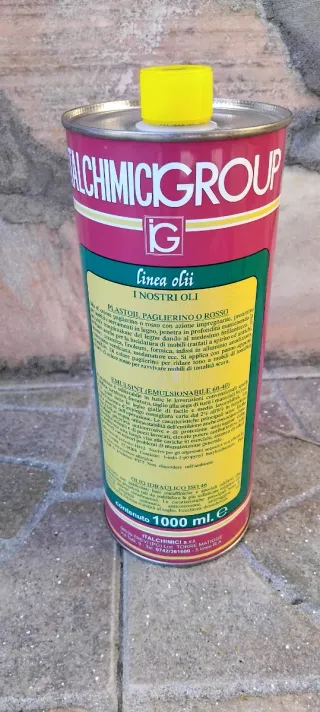 Olio paglierino per il trattamento e la lucidatura del legno. Penetra in profondità. - Ideale per mobili in legno, plastica, ferro, alluminio. - Adatto per la lucidatura di mobili antichi e moderni. - Rende il legno lucido e ne ravviva il colore. - Contenuto: 1000 ml. Contenuto intatto aperto solo il tappo.