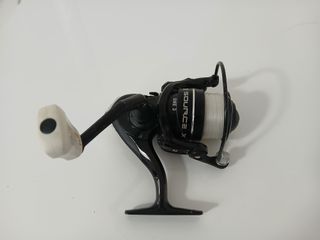 Mulinello da pesca spinning Source One 3, ideale per la pesca. - Colore nero lucido. - Bobina con filo bianco. - Manovella con impugnatura chiara. Mulinello da Pesca Spinning Source One 3