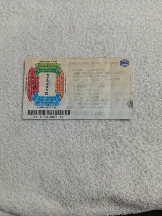 Biglietto per la partita di calcio tra Milan e Juventus. - Stadio San Siro, Milano - Data: 21 Ottobre 2000 - Orario: 20:30 - Settore: Primo Anello Blu - Fila: 7 - Posto: 11