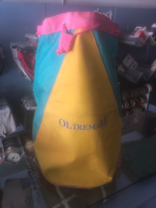 borsone sportivo medio, giallo e blu, con manici e possibilità di portare anche a tracolla,la tasca interna è un po' scucita