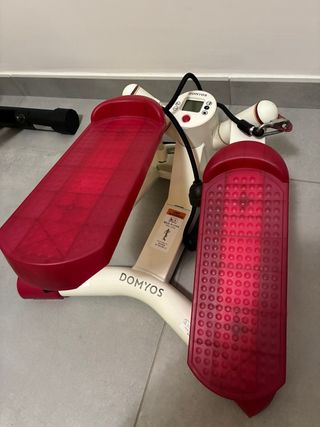 Stepper Domyos con pedali rossi e struttura bianca. - Pedali antiscivolo. - Display digitale. - Elastici per allenamento braccia inclusi.
