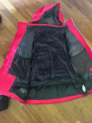 Tuta da sci CMP, utilizzata solo una volta. Colore rosa vivace. - Cappuccio integrato. - Zip frontale. - Tasche laterali con zip.