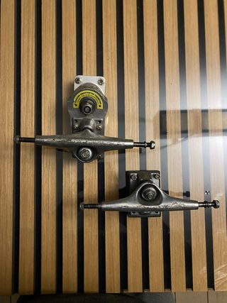 Progettato specificamente per i surfisti, il Thruster I è l'originale meccanismo di rotazione a molla di SmoothStar. Realizzato in robusto alluminio, molle in acciaio, rondelle e cuscinetti, il Thruster l è regolabile per un maggiore controllo in pendenza e una maggiore sensibilità in piano. Il truck presenta qualche graffio che non ne compromette la funzionalità. Sempre fatto regolare manutenzione per garantire la perfetta funzionalità di molla e rondelle, ma senza smontarlo mai del tutto come raccomandato dalla casa produttrice.
