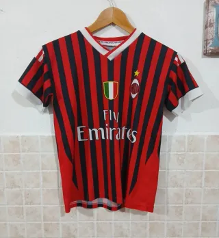 Maglia da calcio a maniche corte con il nome Pato e il numero 7 stampati sul retro. Presenta un design a strisce verticali rosse e nere. Piccola scucitura - Colore: Rosso e nero - Maniche corte - Design a strisce verticali spalle 42 lungh 55