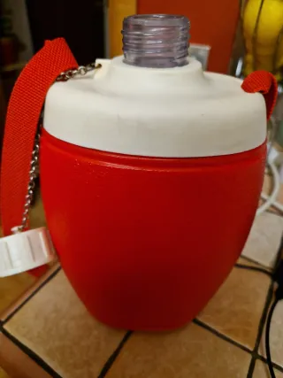 Borraccia termica - Capacità: 1 Litro - Colore: Rosso e Bianco - Materiale: Plastica resistente - Tracolla inclusa