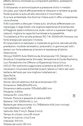 Modello RC Crawler 1/10 4x4, colore rosso con verricello. - Scala 1:10 - Trazione 4x4 - Modello 104026 - Colore: Rosso con verricello Comprata per errore