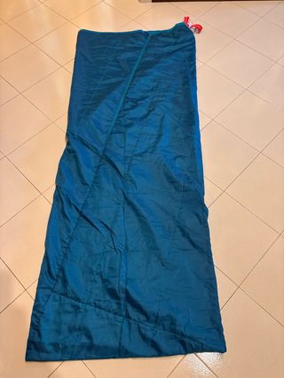 Sacco a pelo blu, ideale per escursioni e campeggio. La taglia è L. - Materiale esterno resistente. - Zip laterale. - Cuciture trapuntate.