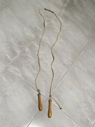 Corda per saltare in stile classico regolabile, ideale per allenamenti, - Manici in legno. - Corda resistente. USATA - MOM#