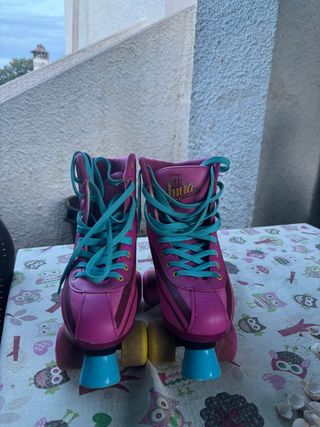 Vendo per inutilizzo Pattini a rotelle Disney Soy Luna, perfetti per iniziare a pattinare. Sono in ottime condizioni, ma senza scatola originale. - Modello Disney Soy Luna - Numero 36/37 - Colore rosa e azzurro - Ruote in plastica