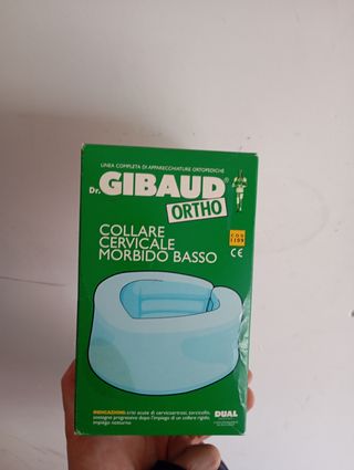 Collare cervicale morbido basso, marca Dr. Gibaud Ortho. Ideale per sostenere il collo. - Colore azzurro chiaro. - Materiale morbido e confortevole. - In buone condizioni, presenta lievi segni di usura.