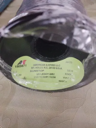 Bobina di filo per cucito. - Marca: American & Efird - Modello: Sunstop - Colore: UV LEGACY GRY (Grigio scuro) - Quantità: 2100 YD / 1920M