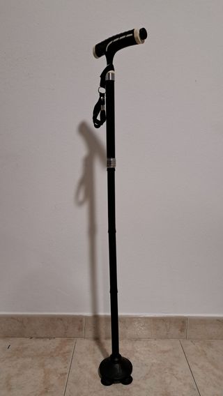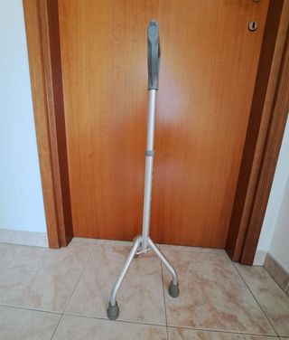 Stampella di sicurezza. Bastone tripode, comodo manico d'appoggio. Regolabile in altezza, in alluminio. Come nuovo.