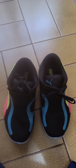 Vendo un paio di scarpe Puma Rise Nitro, numero 44. Sono in ottime condizioni - Colore nero con dettagli turchese e giallo fluo - Numero: 44 - Marca: Puma Le ho usate solo una volta, l'unico difetto è che la punta si è un po' scordata, il resto è in perfette condizioni come si può vedere nelle foto.