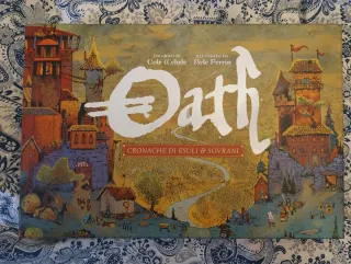 Gioco da tavolo Oath in italiano, edito da Leder Games. - Illustrazioni di Kyle Ferrin. - Ideato da Cole Wehrle. - Titolo: Cronache di Esuli & Sovrani.