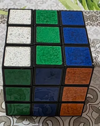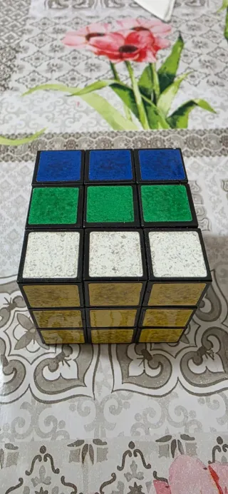 Cubo di Rubik con colori vivaci, perfetto per sfidare la mente. - Facce colorate: blu, verde, bianco e oro. - Design classico 3x3.